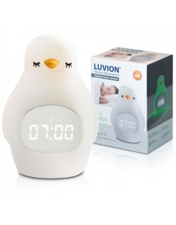 LUVION penguin sleep trainer is ideal for teaching your little one early on when it’s not yet time to get up out of bed. You do this by setting the sleep trainer function to the desired time. The light will light up half an hour before the set time (yellow) to indicate that it's almost time to get up, during this half hour the light will get brighter as it gets closer to the wake up time. At the set time, the color changes to green to indicate to your child he can get out of bed if he is awake.