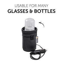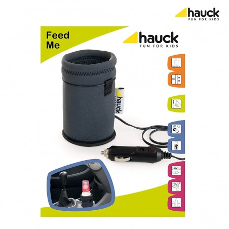 The feed me fits any cars cup holder due to its small size or can be attached to the dashboard by its hanger. The 12-volts link up has a power indicator and an integrated overheat protection. This compact bottle warmer made of durable neoprene and features a unique heating element for a quick and even heating of baby food.