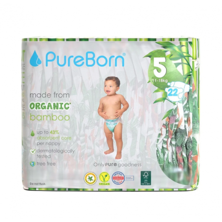 PureBorn nappies are made from organic bamboo, up to 43% absorbent core per nappy.