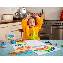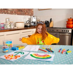 Made with waterproof protection to protect clothes from paint and water splashes, the long sleeves, elasticated wrists and velcro fastening make this comfy and practical!