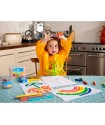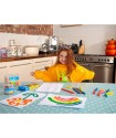 Colourful waterproof apron to protect clothes from paint and water splashes during creative play. With long sleeves, elasticated wrists and velcro fastening.