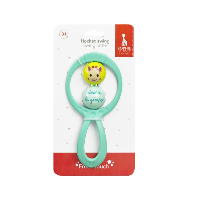 The rattle features 2 balls and watch as the colours blend and sophie la girafe's head to spin.