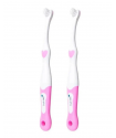 The easy to grip infant toothbrush handle encourages your little one to learn to brush their milk teeth on their own as the short neck and round body is designed for safe brushing!