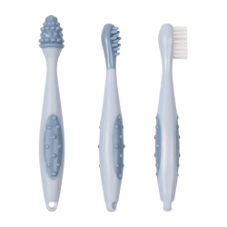 6-18 MONTHS: Massage/toothbrush for young babies designed for brushing very young babies's first milk teeth and for soothing gums.