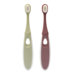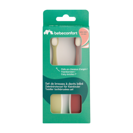The Toddler Toothbrush Set (for 12-18 months) is designed for babies in the early stages of teething.