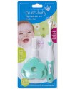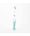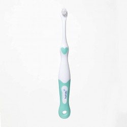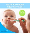 FirstBrush – For parents to brush baby’s teeth, with a long handle for control and a tiny head for small mouths. Soft bristles are gentle on delicate gums.