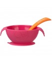The set includes a silicone bowl with stay suction  technology that sticks the base to any smooth surface - like highchair trays or smooth tables - so bubs can’t lift it, knock it, drop it or throw it anymore!