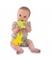 The soft multi-textured silicone monkey brings a unique touch to mouthing and can be removed for cleaning.